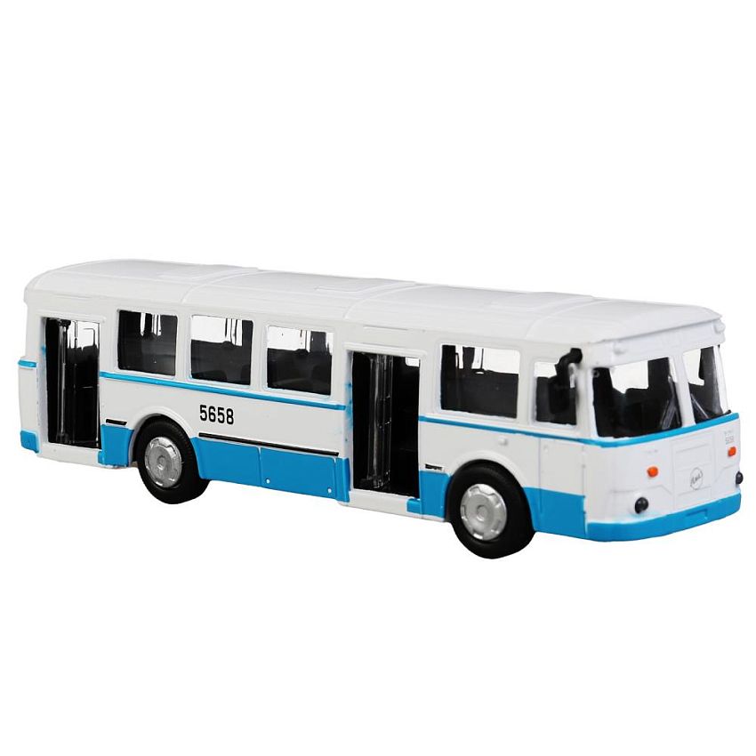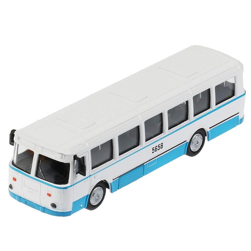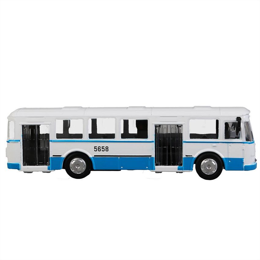 Автобус Технопарк ЛиАЗ 677, бело-голубой, инерционный, без упаковки