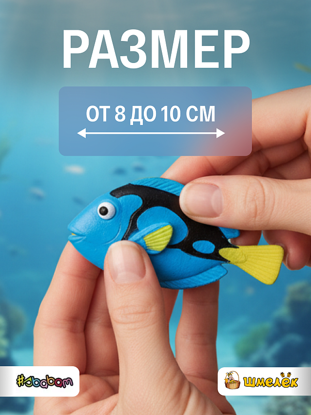 В каждой упаковке можно найти одну красивую фигурку сюрприз. Вам могут попасться морские животные: морская черепаха, черноперая акула, рыба-клоун, манта (светится в темноте), рыба-парусник (светится в темноте), рыба-хирург. Конкретный вариант фигурки тянучки станет известен только после покупки и вскрытия упаковки.