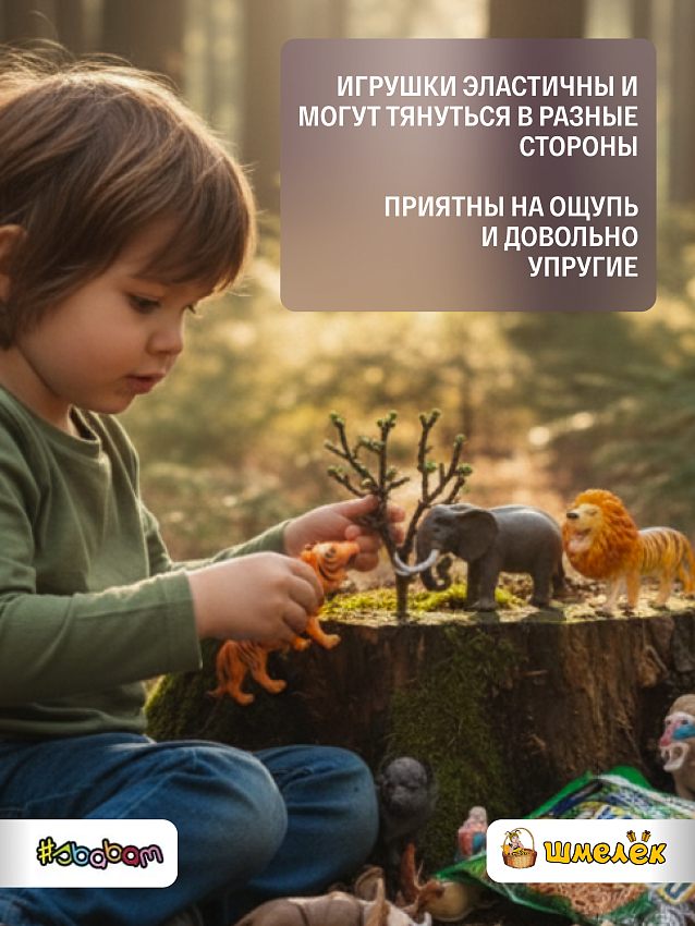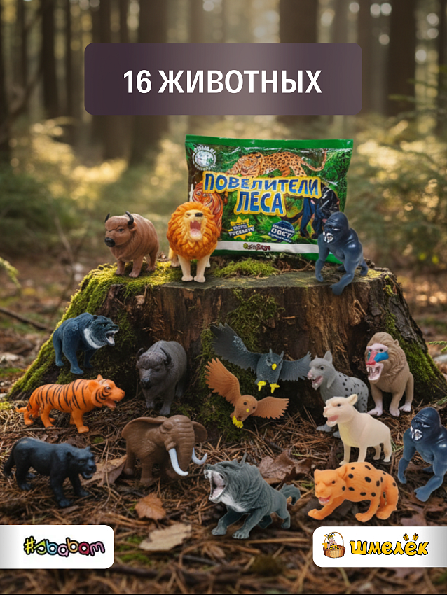 Фигурки-тянучки познакомят ребенка с удивительным миром повелителей леса. В каждой упаковке можно найти одну красивую фигурку животного. Вам могут попасться: белый тигр, черная пантера, серая неясыть, филин и другие. Фигурки выглядят, как настоящие! Эту коллекцию никак нельзя пропустить!