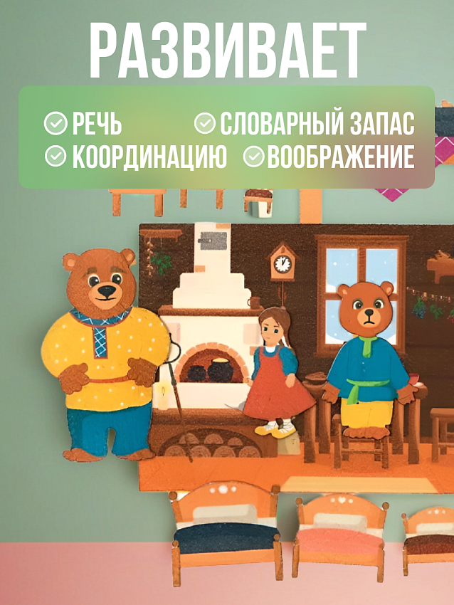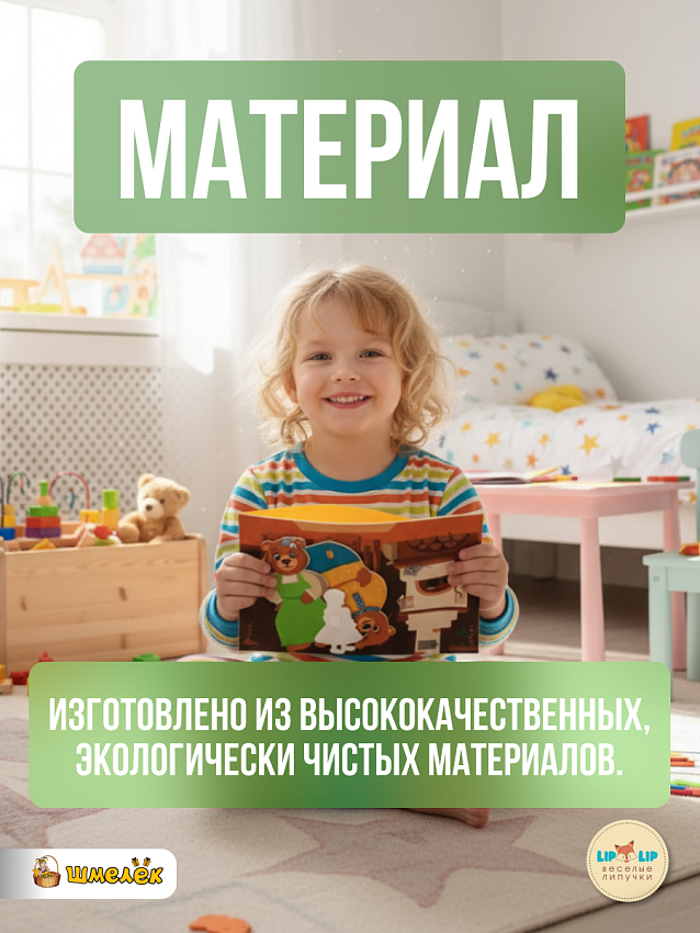 Развивающая игра из фетра Три медведя, LIP1320 - это оригинальная многоразовая настольная игра на липучках для малышей. Уникальный сюжетно-ролевой набор поможет детям погрузиться в мир сказки и создать собственные истории.