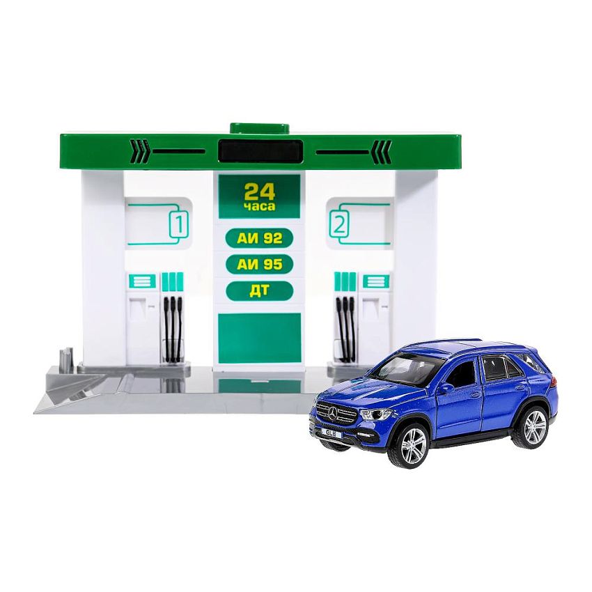 Игровой набор Технопарк Автозаправочная станция с автомобилем Mercedes-Benz GLE