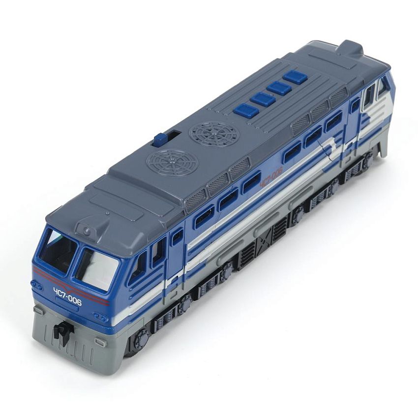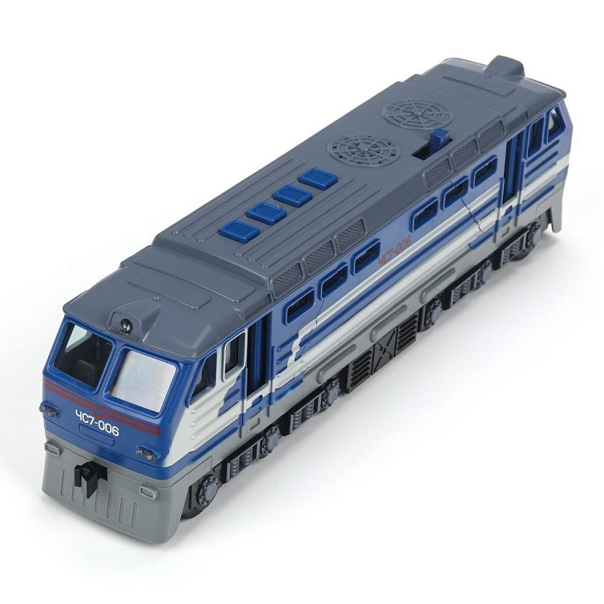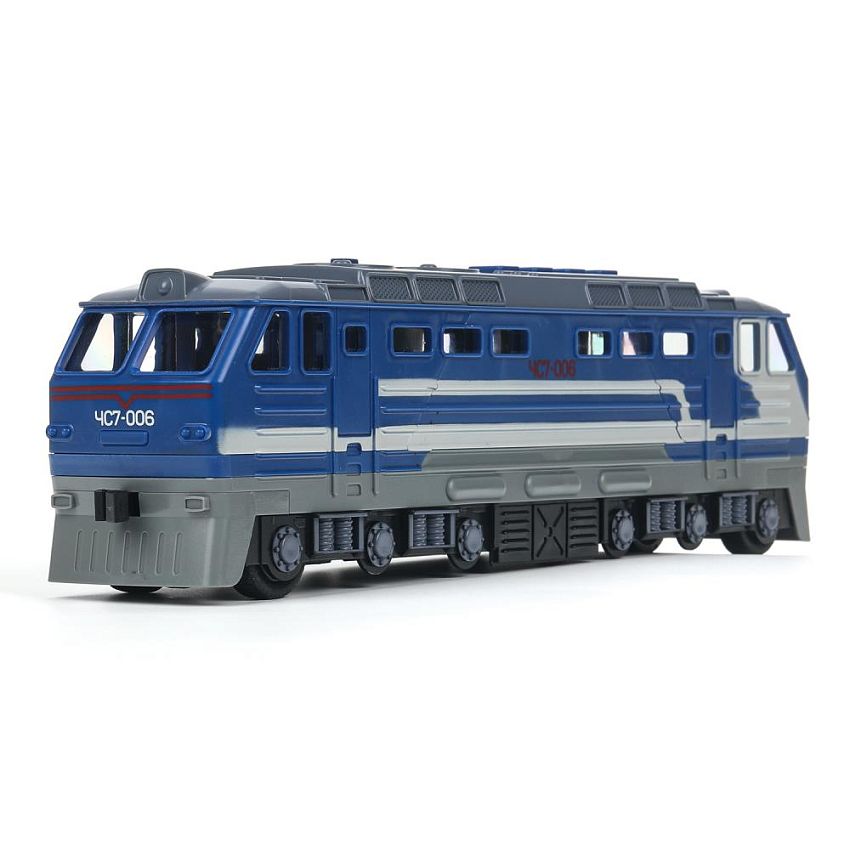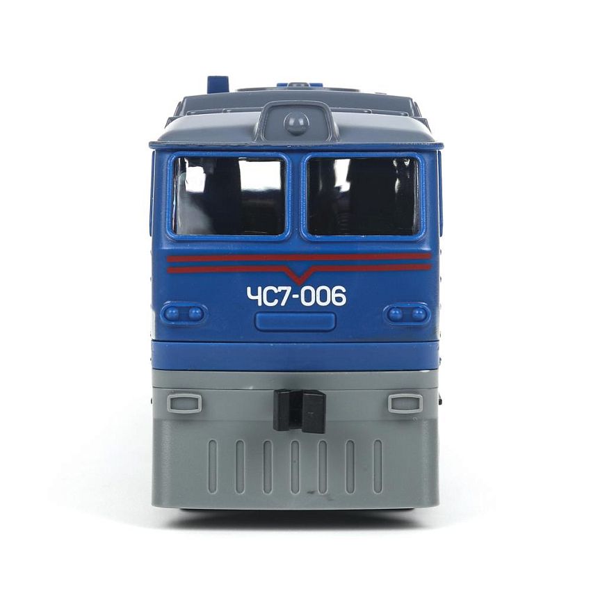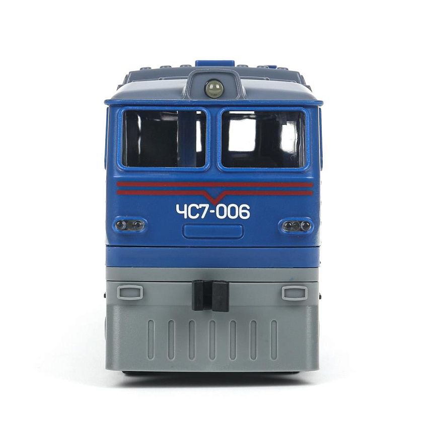 Эта пластиковая модель локомотива, является копией настоящего пассажирского электровоза ЧС7, выпускавшегося на заводе Шкода для железных дорог СССР. Этот локомотив представлен в серо-синей окраске. Благодаря световым и звуковым эффектом, играть с локомотивом будет особенно интересно.