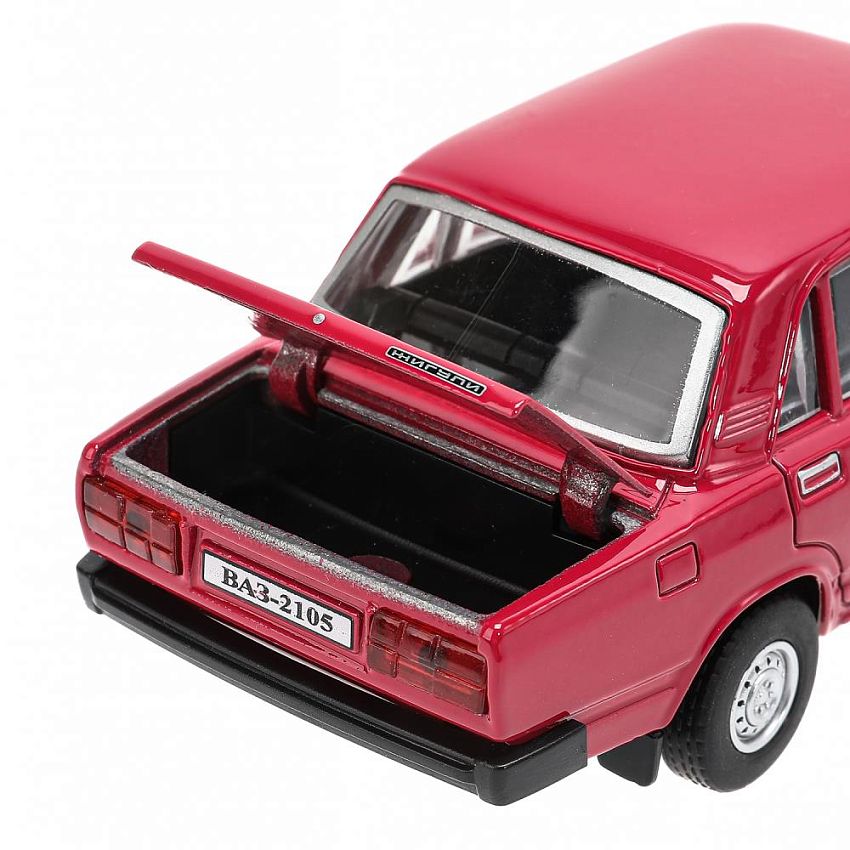 Металлическая модель отечественного автомобиля ВАЗ-2105 ''Жигули'' малинового цвета, от ''Технопарк'', выполнена с учётом всех особенностей прототипа. Благодаря открывающимся передним дверям, которые делают машинку похожей на настоящую, всегда можно заглянуть к ней внутрь, чтобы убедиться - каждая деталь отлично проработана. Так же у модели открывается багажник.
