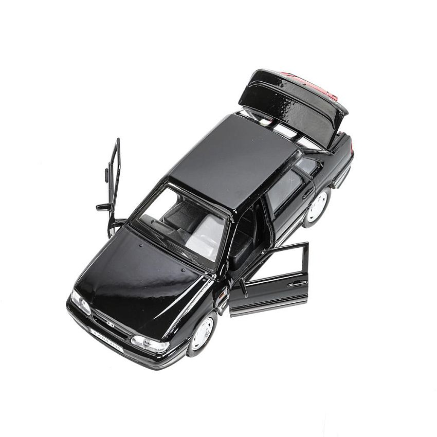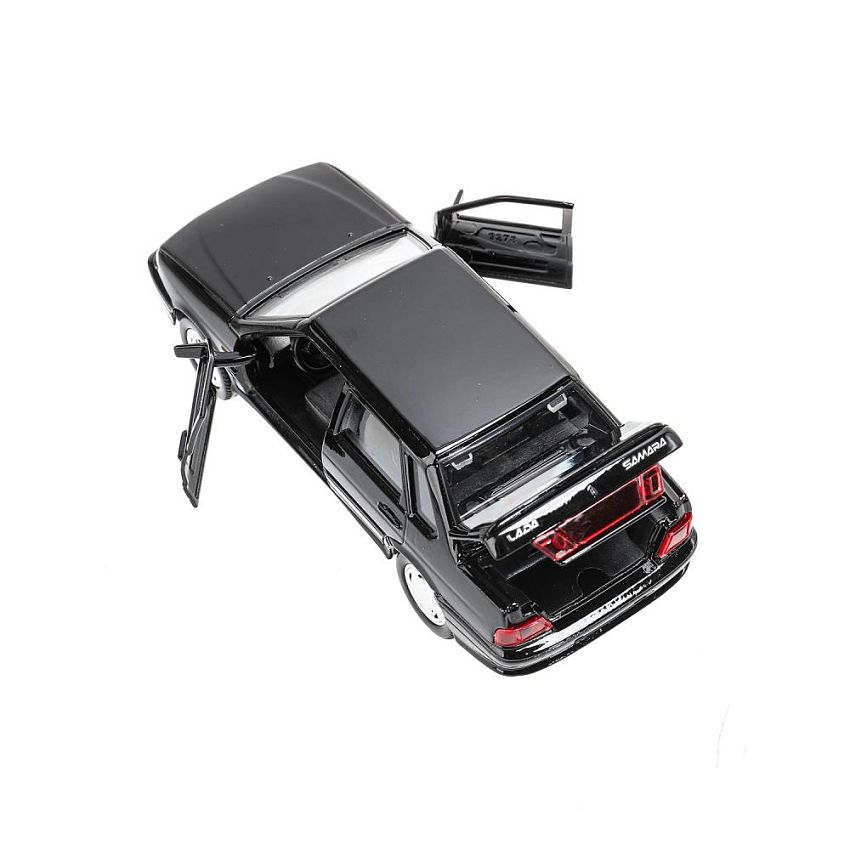 Металлическая модель отечественного автомобиля LADA-2115 Самара чёрного цвета, от ''Технопарк'', выполнена с учётом всех особенностей прототипа. Благодаря открывающимся передним дверям, которые делают машинку похожей на настоящую, всегда можно заглянуть к ней внутрь, чтобы убедиться - каждая деталь отлично проработана. Так же у модели открывается багажник.