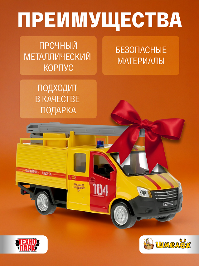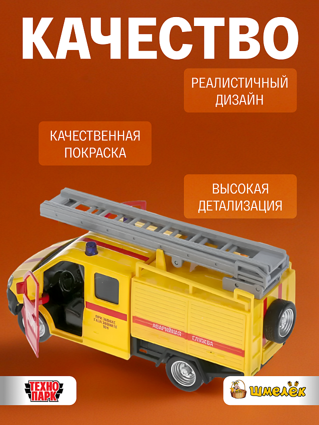 Металлическая инерционная модель грузовика ''ГАЗель Next'' в окраске аварийной газовой службы от ''Технопарк'' станет отличным подарком для ребёнка: