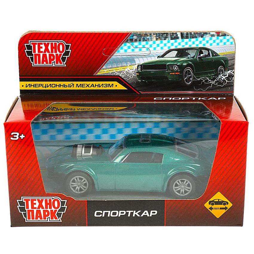 Коллекционная металлическая модель ''Спорткар'', зеленого цвета, от ''Технопарк'' выполнена в стиле американских маслкаров:
