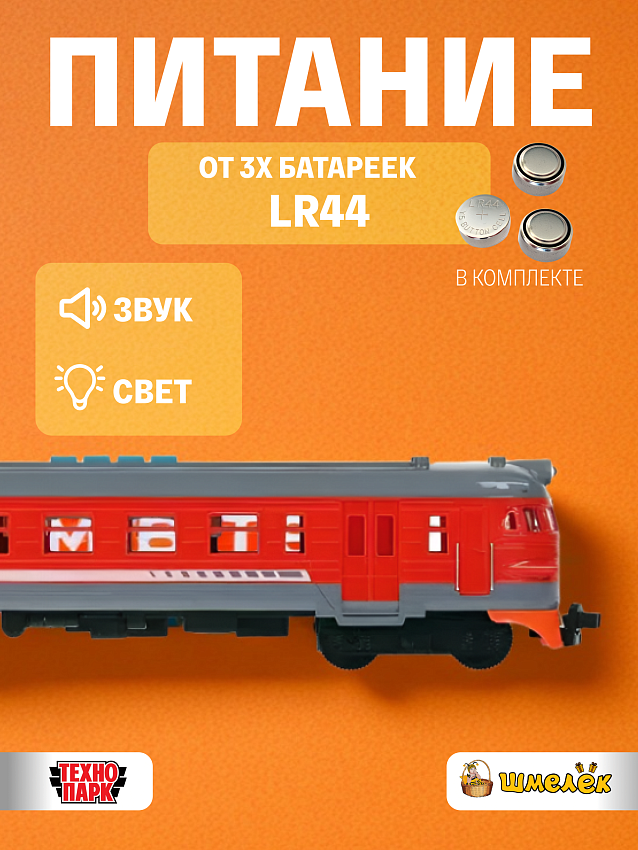Модель Технопарк Электричка ЭР-1, красная, пластиковая, инерционная, свет, звук