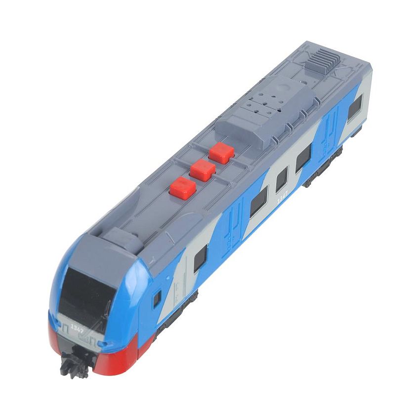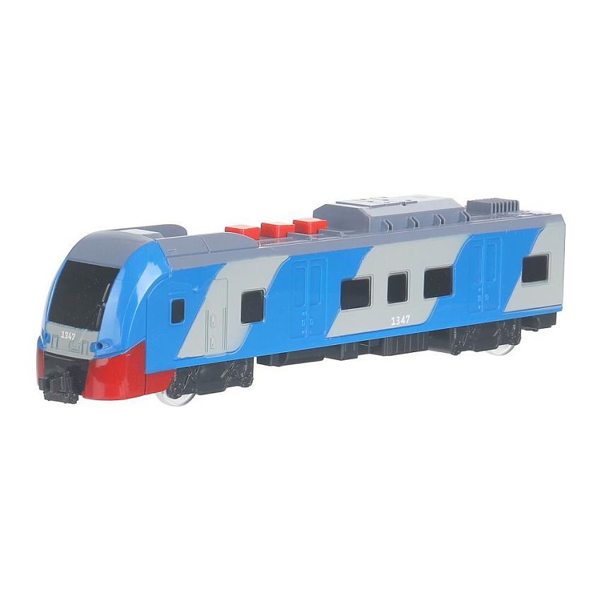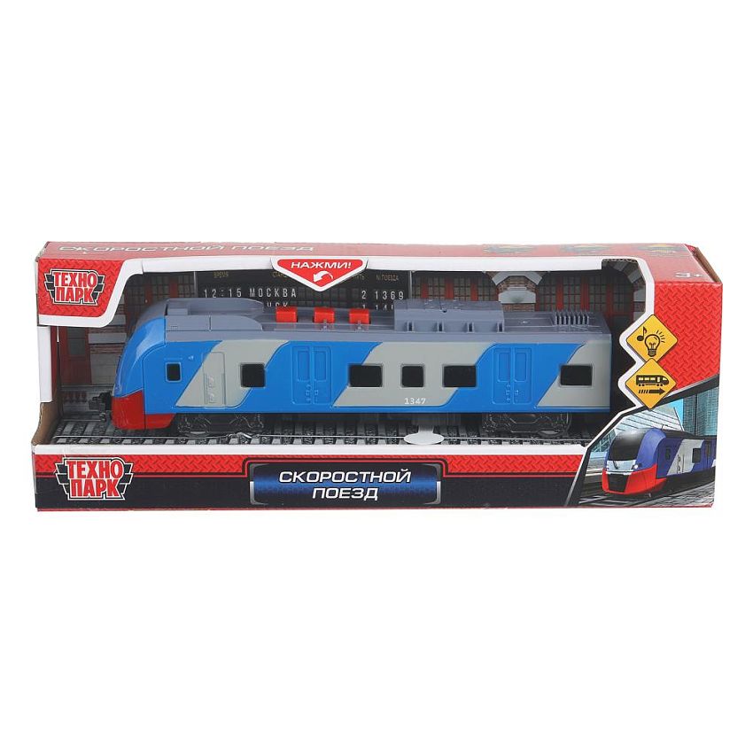 Модель Технопарк Скоростной поезд серо-синий, пластиковый, инерционный, свет, звук, 20 см