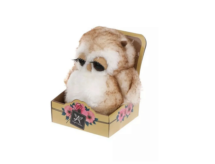 Мягкая игрушка Angel Collection Сова с ресничками, бежевая, 14 см