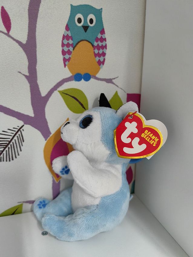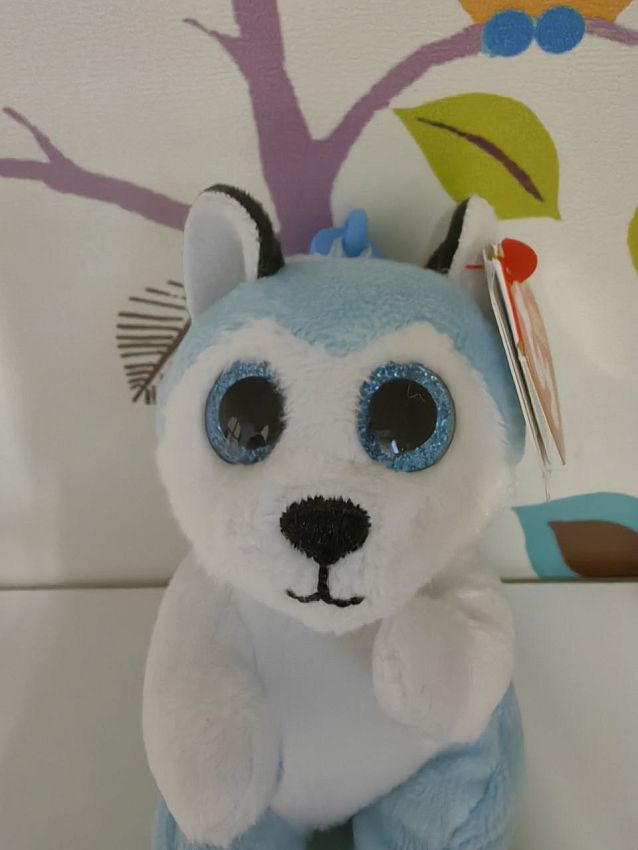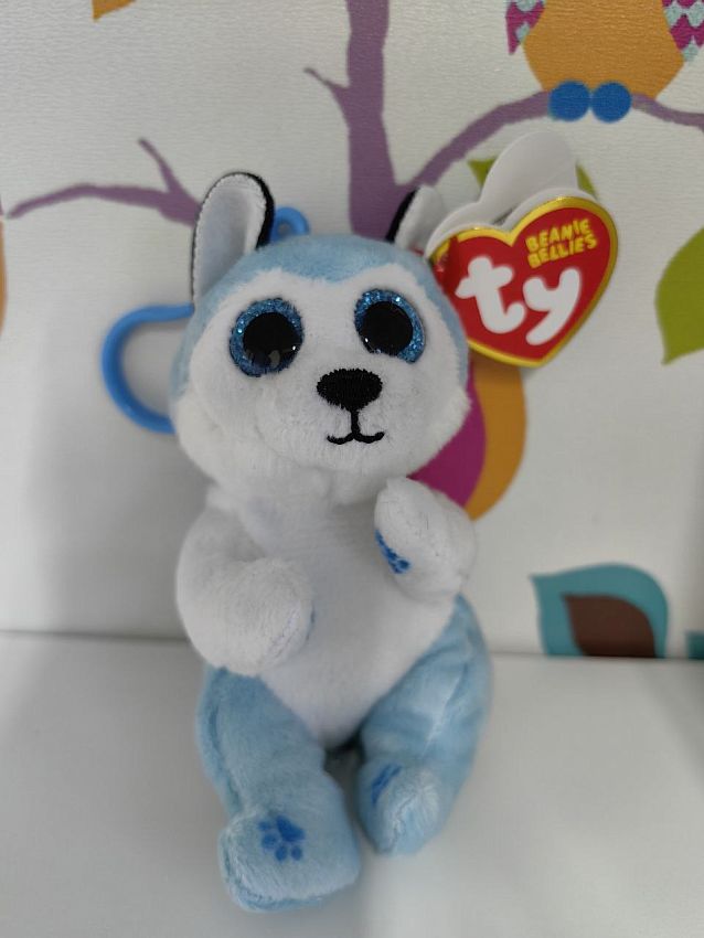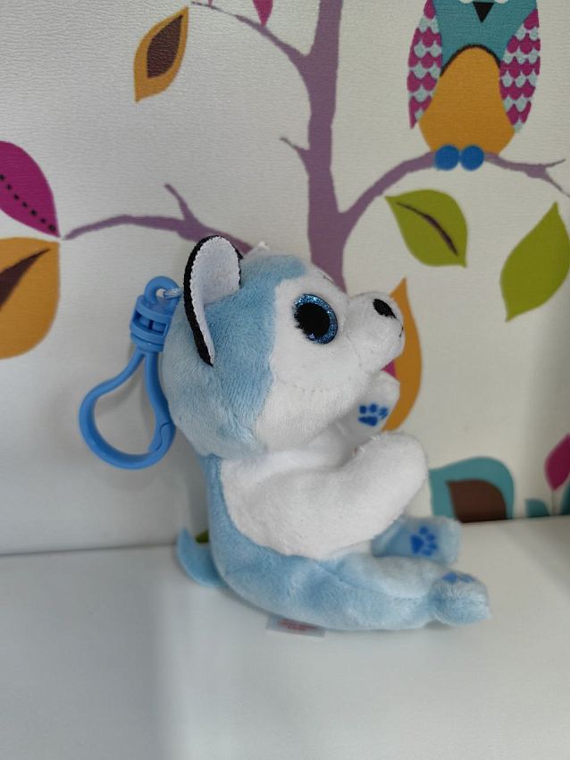 Щенок хаски Тандер имеет мягкую шелковистую шёрстку и фирменные блестящие глазки. Игрушку можно взять с собой, прикрепив к сумке или рюкзаку безопасным пластиковым карабином.