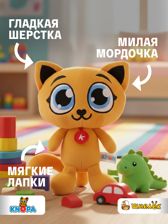 Мягкая игрушка КНОПА из мультфильма "Котенок Кнопа и его друзья"- это универсальная игрушка для тех, кто ценит качество и ищет добрую эмоцию в каждом моменте. Рыжий кот КНОПА дарит ощущение тепла и заботы, благодаря чему становится незаменимым спутником для повседневных игр или уютных вечеров.