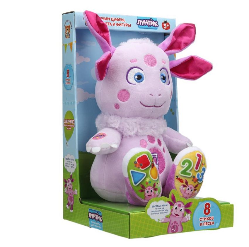 С игрушкой «Лунтик» дети смогут воссоздать уже знакомые, придумать новые сюжеты для игры и поиграть в весёлую игру, нажимая на цифру или фигуру, которую он назовёт. Ребёнку не придётся скучать по любимому герою мультсериала, ведь теперь он всегда будет с ним! Лунтик будет рад встрече со своими друзьями. Собери всю коллекцию мягких игрушек из мультсериала «Лунтик и его друзья»! Игрушку удобно брать в гости, на прогулки и в поездки.