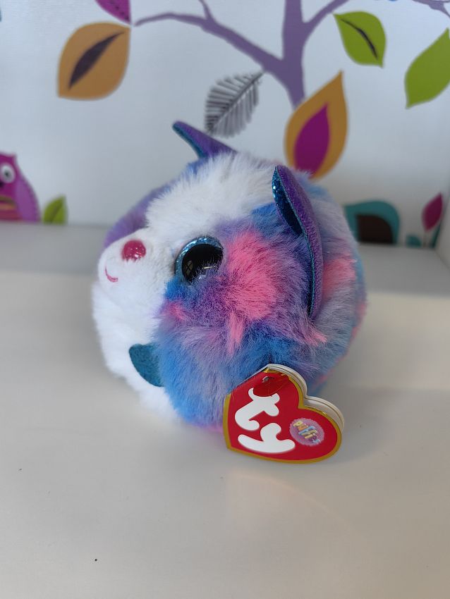 Мягкие игрушки от бренда TY – это яркие персонажи, узнаваемые во всём мире благодаря своему запоминающемуся внешнему виду и отличному качеству. Щенок Хаски Cleo с огромными искрящимися глазками и блестящими акцентами на ушках и лапках идеально помещается в руке, его можно бросать, и он всегда приземляется на лапки благодаря специальным утяжеленным шарикам.