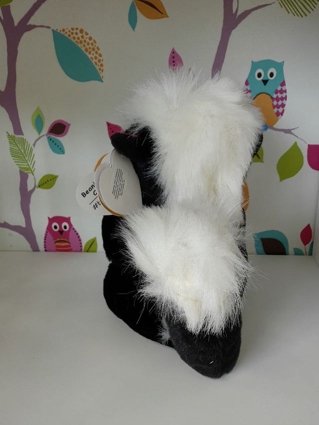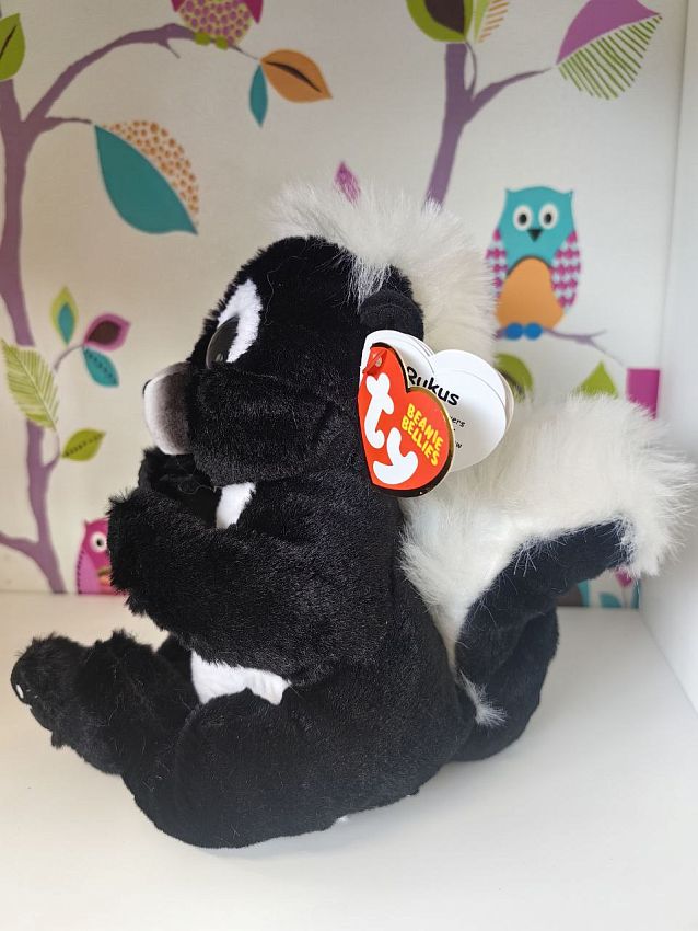 Мягкая игрушка Черно-белый скунс Рукус – это сидящая мягкая игрушка с нежной пушистой шерсткой и большими любознательными глазками! Благодаря своему очаровательному образу они привлекают внимание и детей, и взрослых. А компактный размер игрушки всего 15 см позволяет легко взять её с собой в путешествие. Серия Beanie Bellies возвращает нас к оригинальным TY Beanie Babies с тридцатилетней историей. У каждого персонажа этой коллекции есть не только уникальное имя и дата рождения, но и стихотворение, относящееся к игрушке. Всё это Вы можете увидеть на его оригинальной этикетке-сердечке от TY. Каждый зверёк имеет неповторимый шарм и характер, а также отличается оригинальным стилем. Все они определенно понравятся любителям животных.
