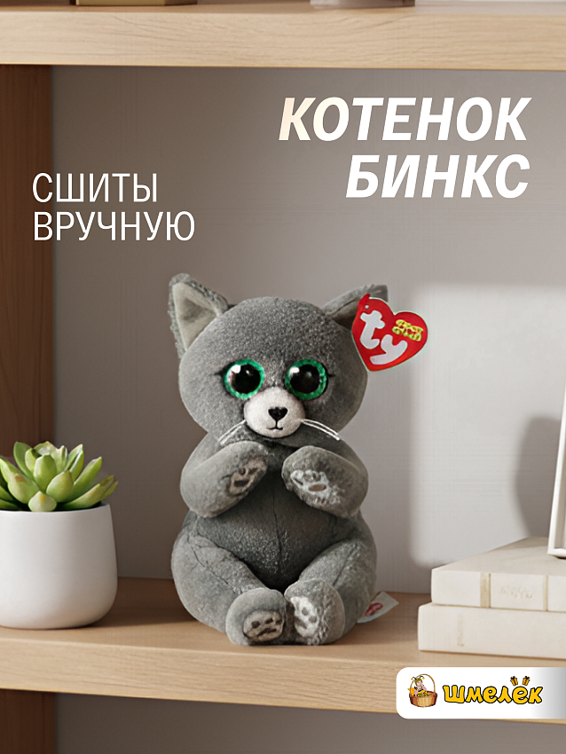 Серый котёнок Бинкс готов стать преданным другом для вашего ребенка. Это оригинальная мягкая игрушка из серии Beanie Bellies - знаменитых глазастиков, которая непременно подарит хорошее настроение Вам и вашим детям! Главная особенность игрушки - приятная на ощупь серая шерстка и большие глаза.