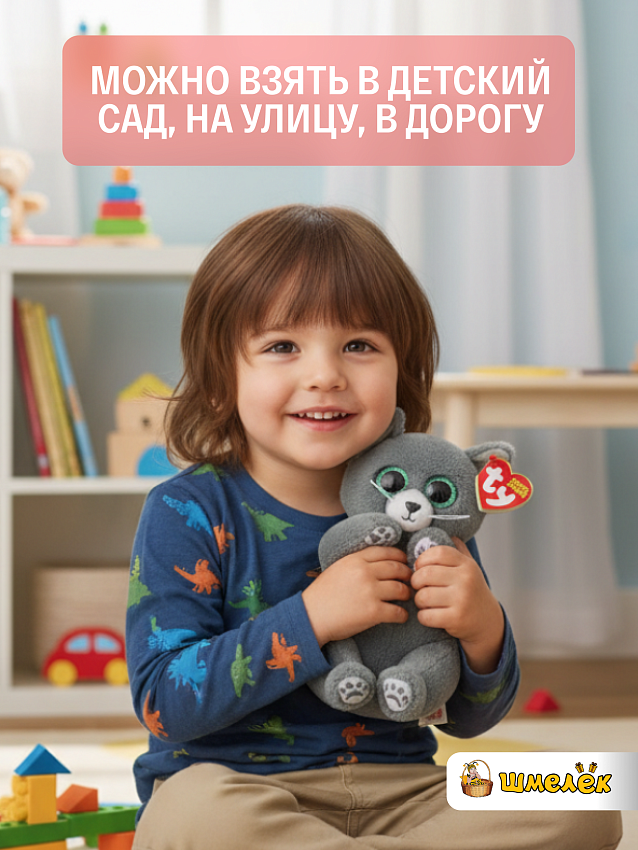 TY мягкая игрушка с блестящими глазами может использоваться, как для игр, так и для декора. Размер котёнка: 15 см