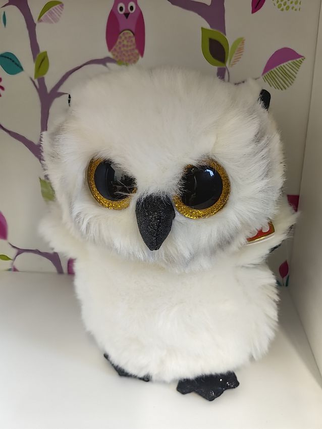 Снежная сова - оригинальная мягкая игрушка из серии Beanie Boos, которая подарит хорошее настроение! Такой питомец может быть хорошим подарком малышу для его игр и другом на долгие годы. Невероятно красивый белый окрас делает игрушку очень похожей на настоящую сову. Это замечательная игрушка, на ощупь приятная и мягкая, не может никого оставить равнодушным.