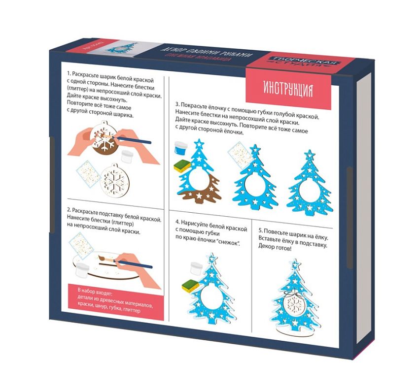 - детали из древесного материала (елка, шарик, подставка) - 3 шт.