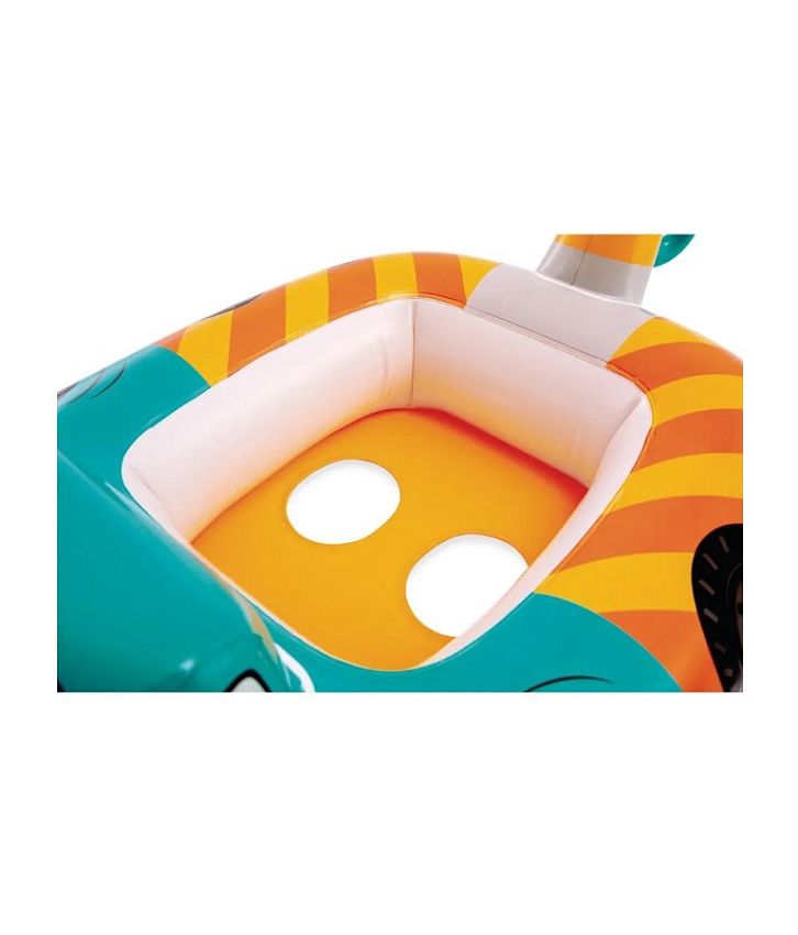 Надувной круг имеет дно с прорезями для ног, благодаря чему малыш никогда не выпадет из круга и будет всегда уверенно чувствовать себя в воде.