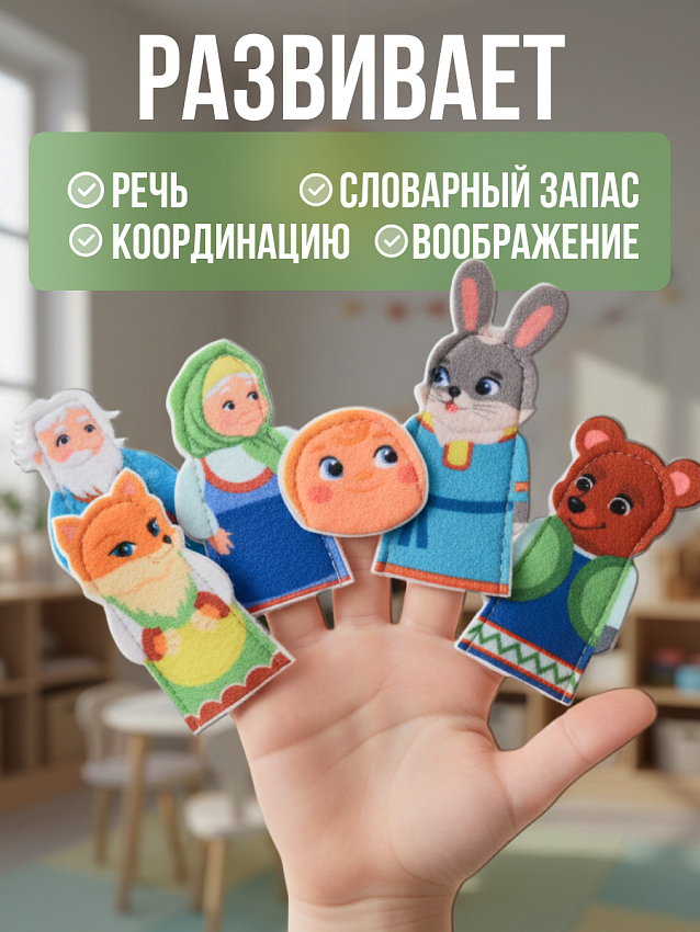 Этот набор кукол на пальчики станет отличным помощником для создания домашнего театра сказок, подойдёт для игр дома, в детском саду или в дороге Детский театр Весёлые Липучки Lip-Lip способствует развитию воображения и коммуникативных навыков, позволяя создавать разнообразные сюжеты в игровой форме. Игры с этим набором помогают ребёнку лучше понимать структуру сказок, развивают актёрское мастерство, внимательность и умение работать в команде. Дети могут самостоятельно придумывать сценарии, реализуя свои идеи и расширяя словарный запас