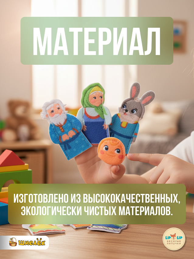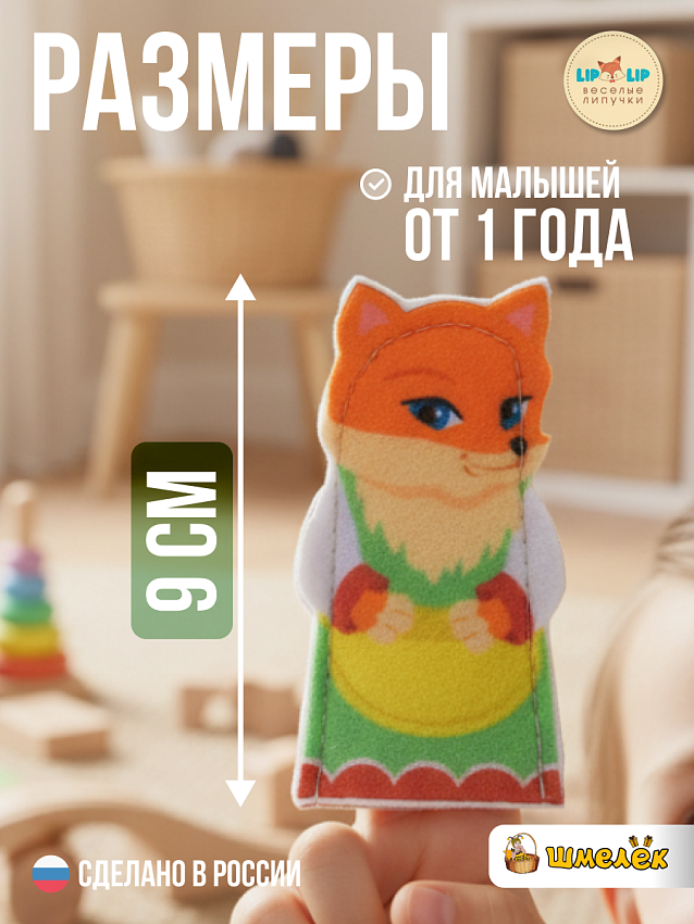 Каждая кукольная фигура выполнена из мягкого фетра, что безопасно для детского использования. Фетровые игрушки не вызывают аллергию, не содержат вредных веществ, приятны на ощупь и легко надеваются на пальцы, благодаря специальной конструкции с липучками, что делает игру комфортной и безопасной. Кукольный театр на руку Lip-Lip (ЛипЛип) способствует развитию мелкой моторики, воображения и речевых навыков у малышей.