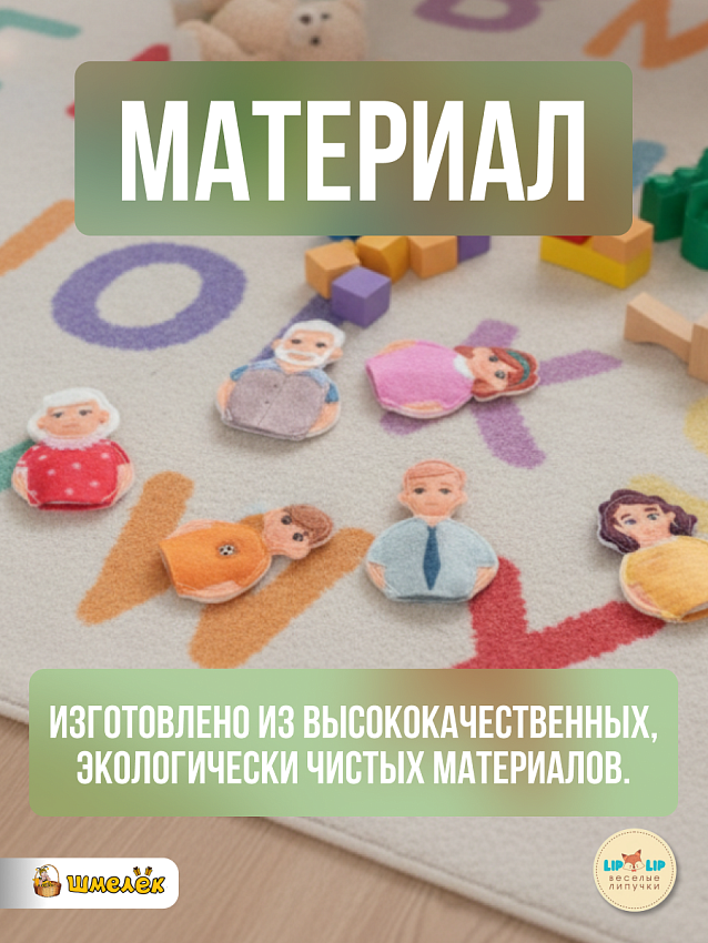 Каждая кукольная фигура выполнена из мягкого фетра, что безопасно для детского использования. Фетровые игрушки не вызывают аллергию, не содержат вредных веществ, приятны на ощупь и легко надеваются на пальцы, благодаря специальной конструкции, что делает игру комфортной и безопасной. Кукольный театр на руку Lip-Lip (ЛипЛип) способствует развитию мелкой моторики, воображения и речевых навыков у малышей.