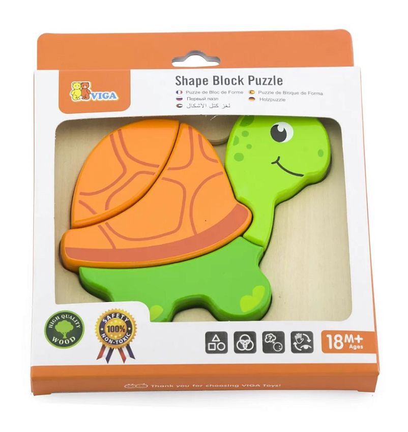 Пазл блочный Viga Черепашка, 4 детали, в коробке