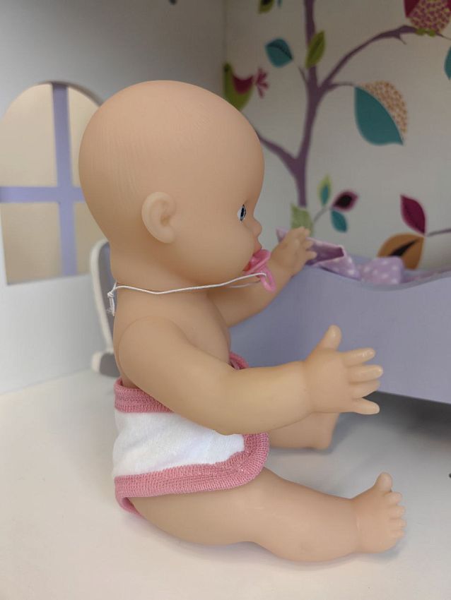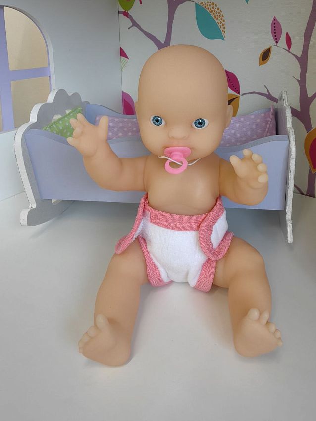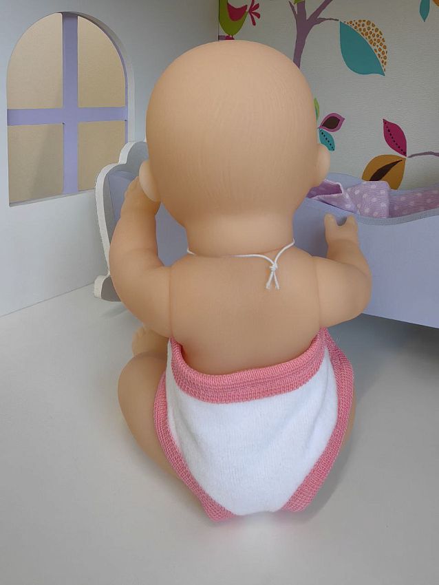 Этот традиционный пупс-голыш обязательно должен быть у любой девочки! Играя с пупсом, девочки копируют действия своих мам, что, как утверждают психологи, готовит малышек к будущему материнству. Милый пупс одет в белые трусики на липучках — ребенок сможет одевать и раздевать его, развивая моторику. Игрушка очень приятна на ощупь, а трогательная улыбка на лице пупса никого не оставит равнодушным!
