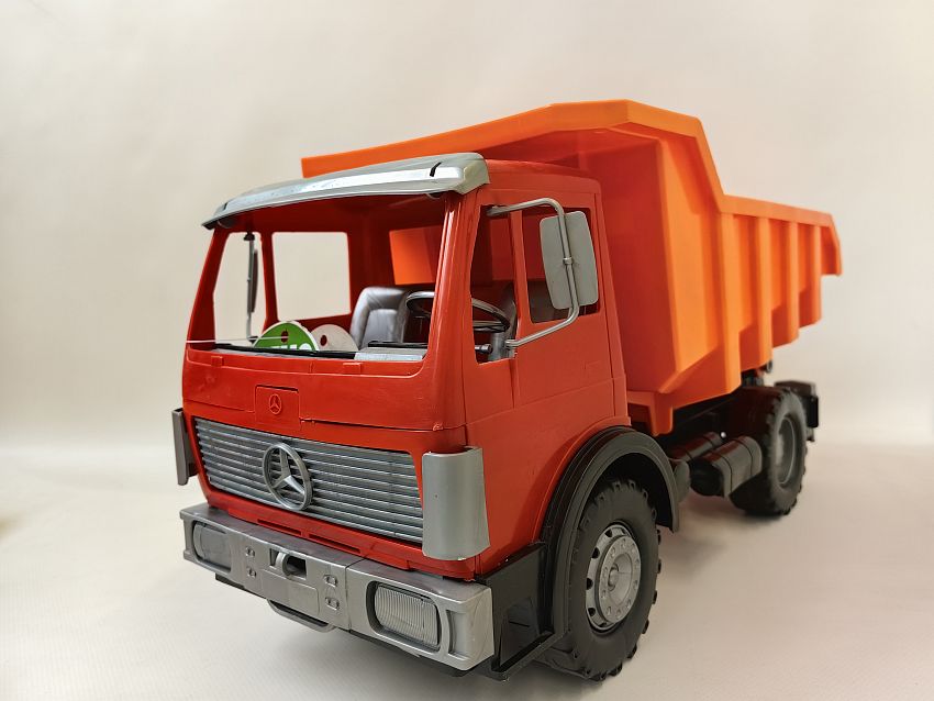 Самосвал дорожный Мерседес - прочная и устойчивая машина с опрокидывающимся кузовом. Он изготовлен из высококачественной пищевой пластмассы с применением самых современных и экологически безопасных технологий. Яркий и привлекающий к себе внимание карьерный самосвал Мерседес отличается высоким качеством. Им можно играть дома и на улице вместе с друзьями, совместно придумывая различные сюжеты и развивая в процессе игры глазомер, ловкость, моторику рук и фантазию.