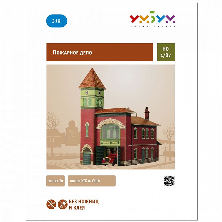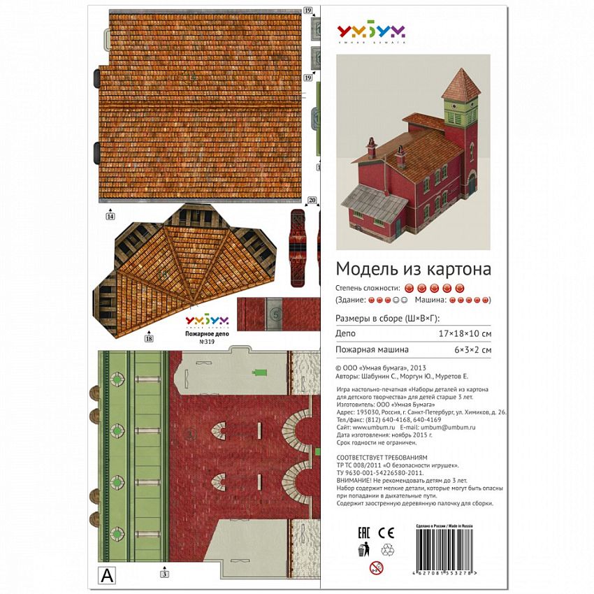 Пожарное депо, без сомнения есть в каждом небольшом городке. А в крупных населенных пунктах подобный узел сети противопожарной службы есть в каждом районе города. Вышка, на которой расположен наблюдательный пост и небольшой гараж с одним или несколькими выездными экипажами пожарной дружины - вот отличительные черты пожарного депо. В нашей модели все это есть. Есть и миниатюрная пожарная машина с лестницей. Правда, в наборе она не главная, мы рассматриваем ее как дополнение, поскольку сборка этой машинки — отдельная сложная задача. Если с постройкой здания (средний уровень сложности) справится каждый, то модель пожарной машинки в наборе может получиться не у всех, потому что у нее максимальный — пятый — уровень сложности.