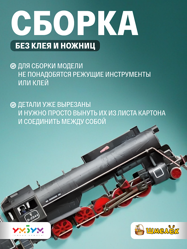 Сборная модель Магистральный грузовой паровоз УмБум603 представляет собой миниатюрную модель паровоза, выполненную из плотного картона.