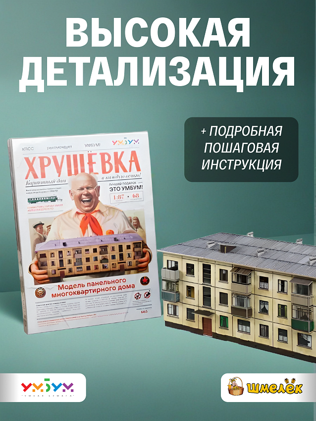 Сборная модель Умная Бумага Хрущёвка УмБум665 представляет собой, миниатюрный макет двухпарадного дома, выполненный из плотного картона, в масштабе 1:87.