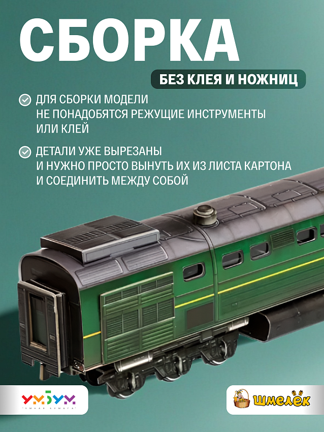 Картонный набор УмБум 641 является частью серии моделей Умная Бумага модели поездов - это модели из картона, которые развивают пространственное мышление и усидчивость у детей. Собирая модель из бумаги своими руками, ребенок учится внимательности и аккуратности. Помимо образовательной функции это отличный способ провести время всей семьей за совместным занятием.
