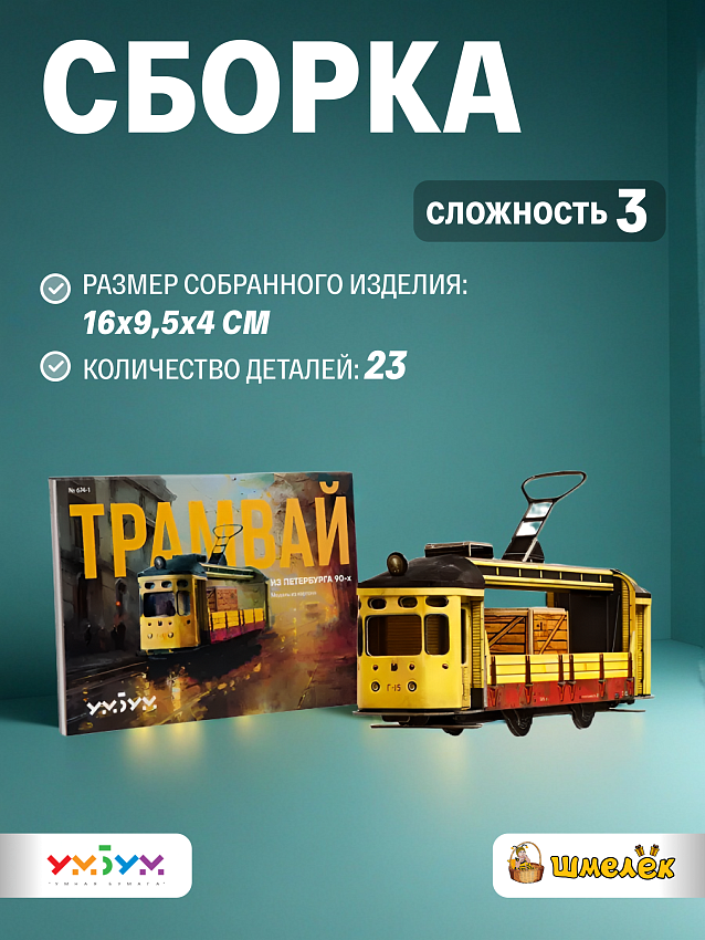 Сборная модель Умная Бумага Трамвай из Петербурга 90-х УмБум674-1 представляет собой миниатюрную модель знаменитого трамвая, выполненную из плотного картона.