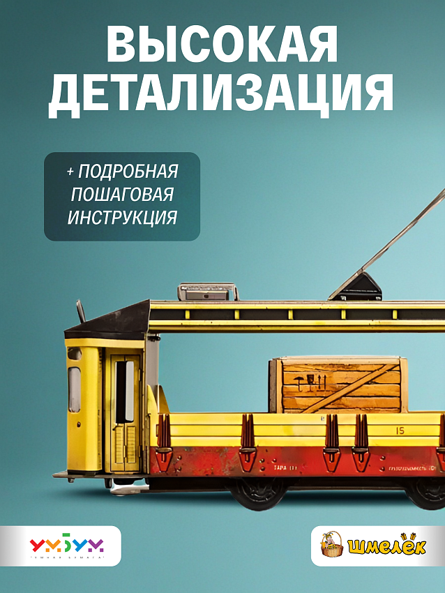 Картонный набор УмБум 674-1 является частью серии Умная Бумага - это модели из картона, которые развивают пространственное мышление и усидчивость у детей. Конструктор Трамвай понравится мальчику или взрослому человеку, который ценит оригинальные идеи для досуга или собирает коллекцию общественного транспорта.