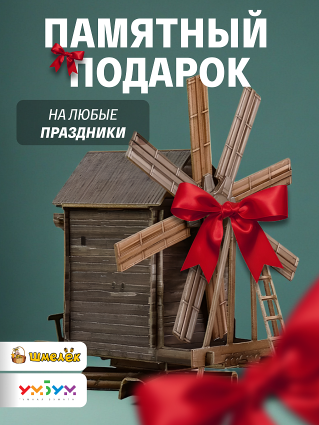 Модель для сборки такого рода, отличный подарок на праздники: новый год, 23 февраля, 1 сентября, день рождения. Конструктор мельница станет достойным сувениром дедушке или отцу, особенно если они интересуются культурой и архитектурой России.