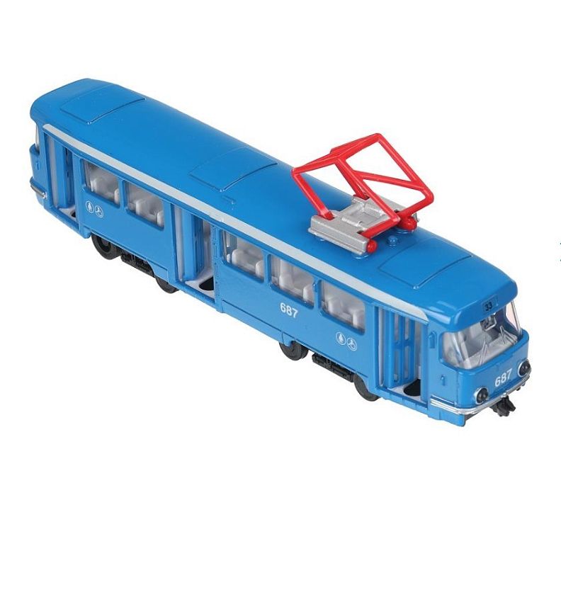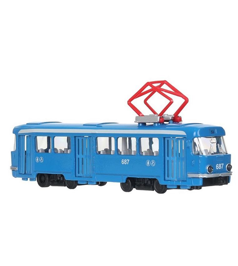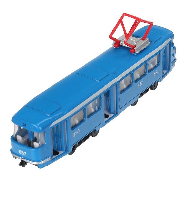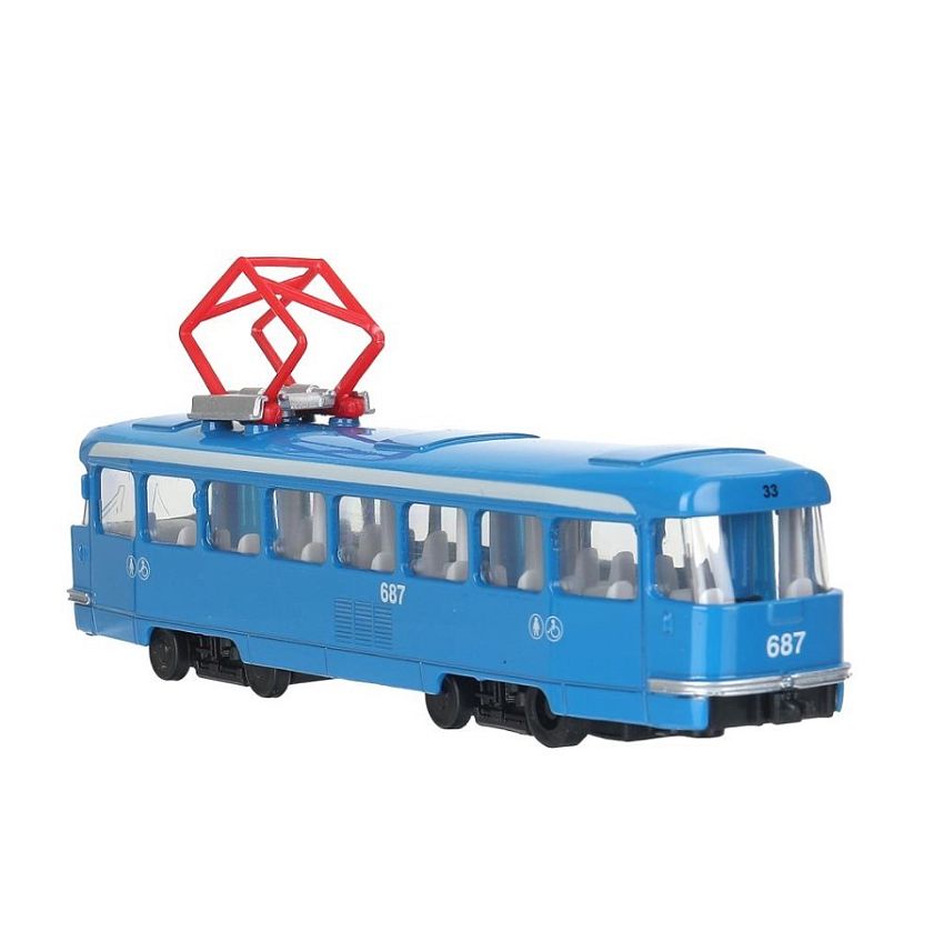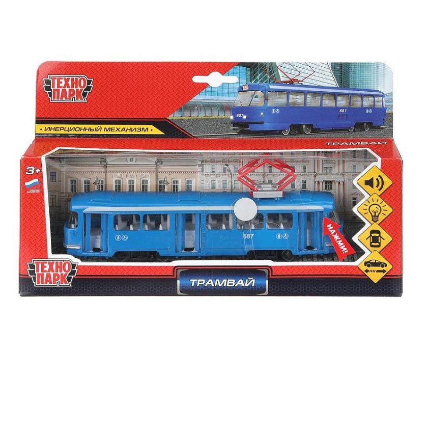 Трамвай Технопарк Гортранс, синий, инерционный, свет, звук