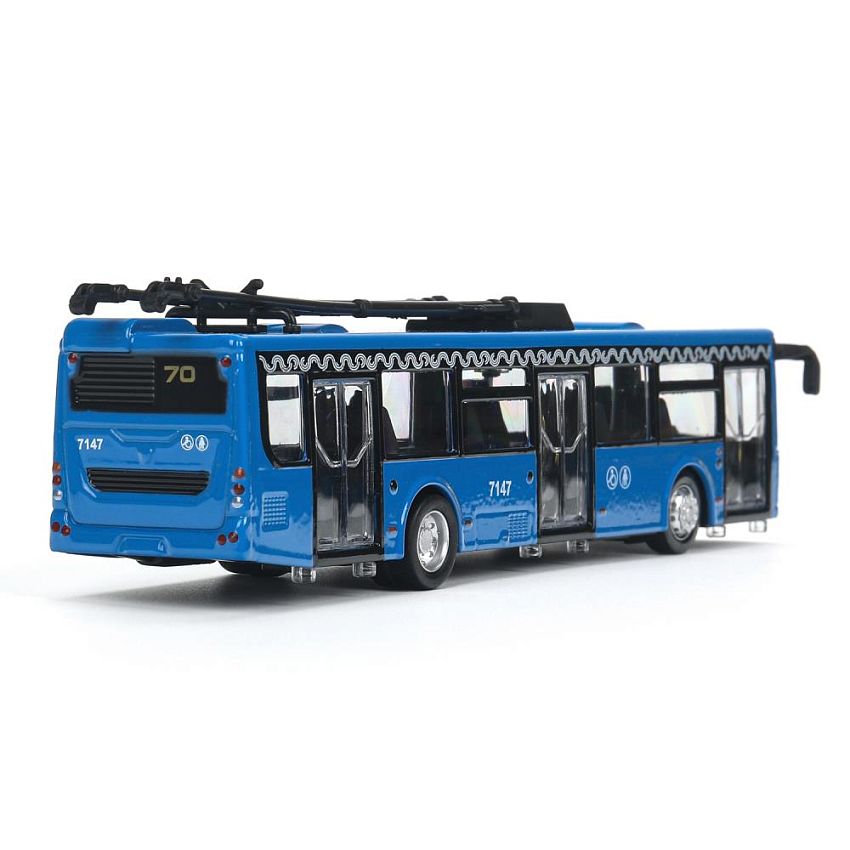 Металлическая модель городского троллейбуса от Технопарк в синей окраске порадует и ребёнка, и коллекционера.