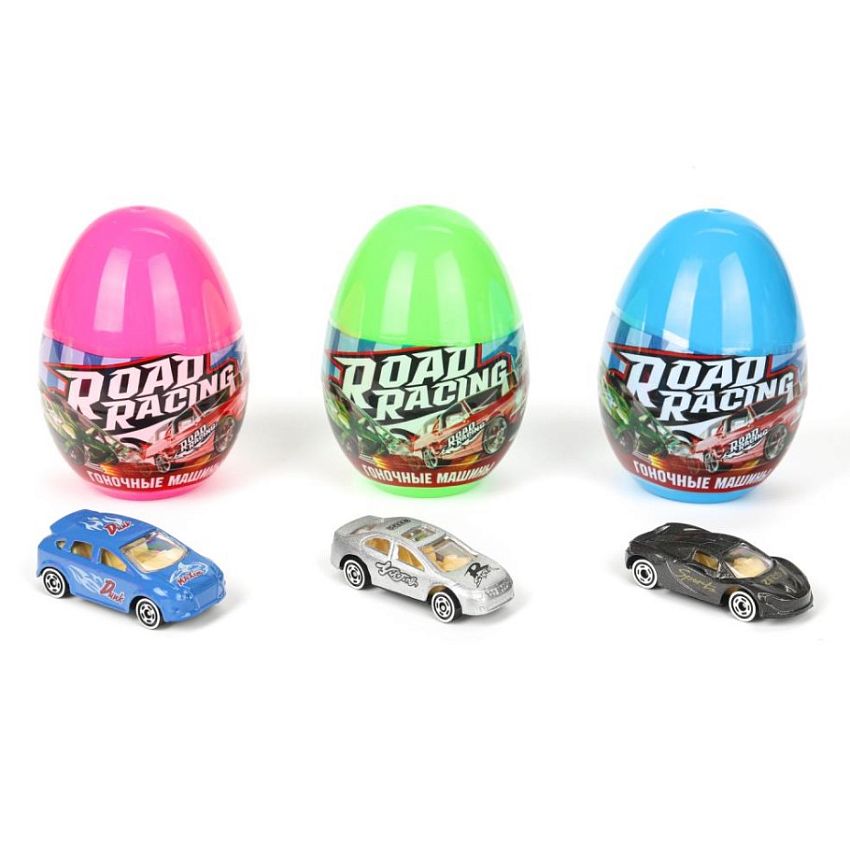 Дети очень любят сюрпризы. Игрушка представляет собой цветное пластиковое яйцо, которое внутри скрывает сюрприз – модель металлической машины. Модели распределены в яйца случайным образом, и угадать какая именно игрушка находится внутри - невозможно. Маленькие коллекционные модели выполнены из металла, изготовлены с точной детальной проработкой в стиле популярной серии Road Racing.