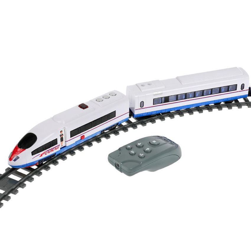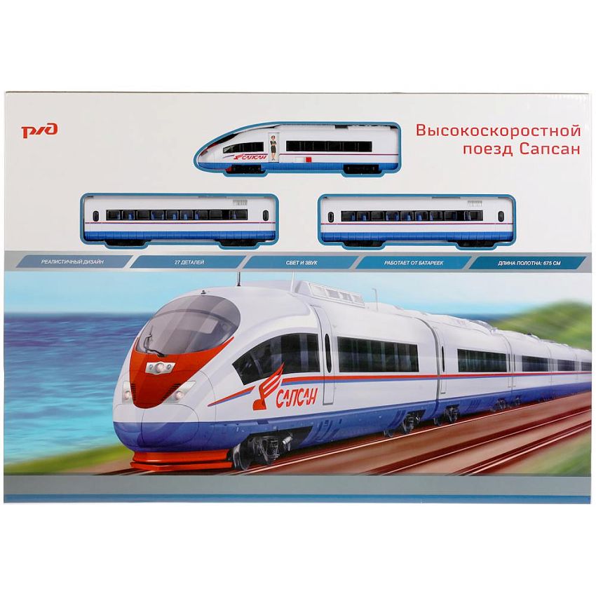 Данный набор железной дороги представляет собой модель высокоскоростного поезда ''Сапсан'', который обеспечивает железнодорожное сообщение между Москвой и Санкт-Петербургом, и между Москвой и Нижним Новгородом. В наборе представлены головной и два прицепных вагона в фирменной окраске. Игра будет еще более реалистичной благодаря дополнительным световым и звуковым эффектам, встроенным в сам поезд. Управление поездом осуществляется с помощью пульта дистанционного управления.